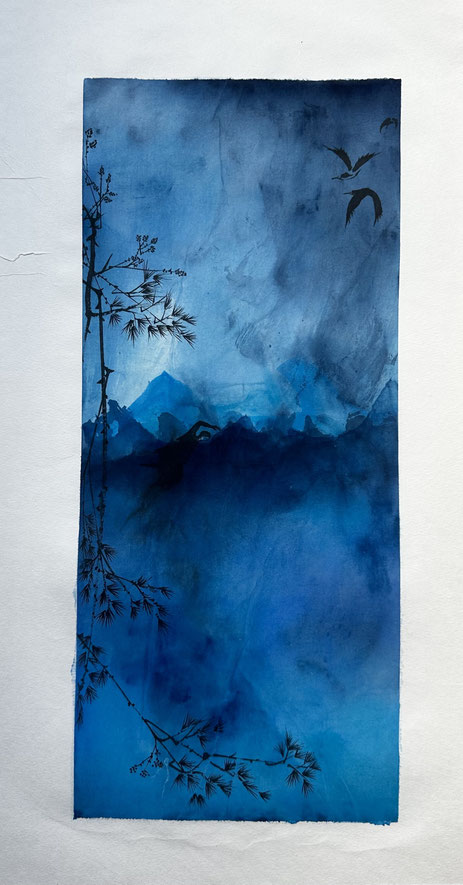 China ink and aquarelle on Xuan paper, 66 x 35 cm, 2019